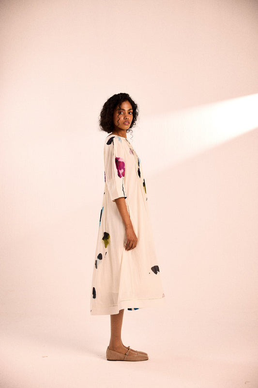 Abstract Print Cotton Elastic Wasit Belt Dress