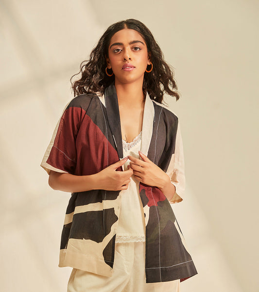 Abstract Print Applique Cotton Shirt Skirt Set of 2