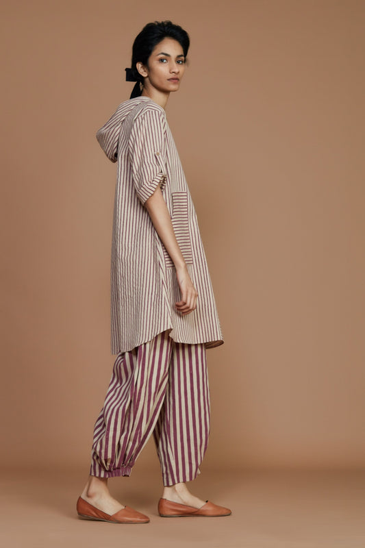 Ivory With Mauve Striped Hooded Co-Ord Set
