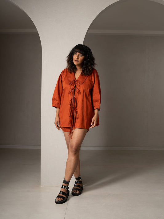 Tangerine Silk Tissue Chanderi Handwork Set with Two-Toned Silk Chanderi Dupatta
