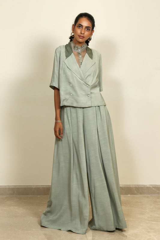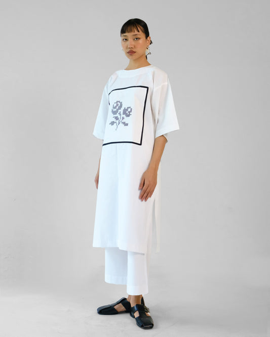 White and Black Cross Stitch Embroidery Cotton Shirt Pant Set of 2
