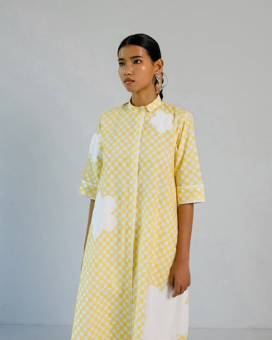 Yellow Checks Applique Cotton Shirt Pant Set of 2