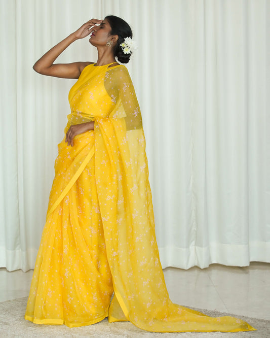 Yellow Poppy Sleeveless V neck Cotton Dress