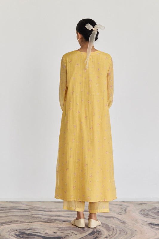 The Gold Beige Silk Tissue Chanderi Kurta & Pants Set