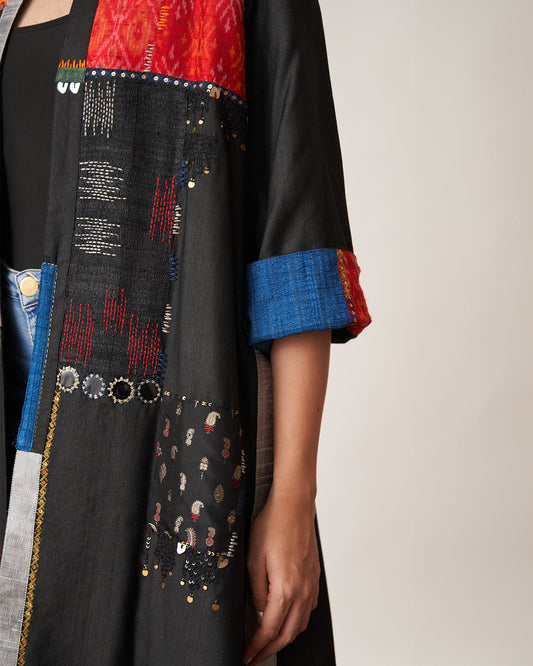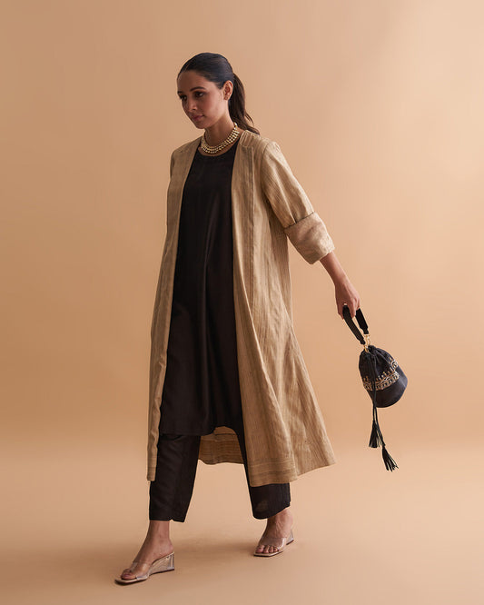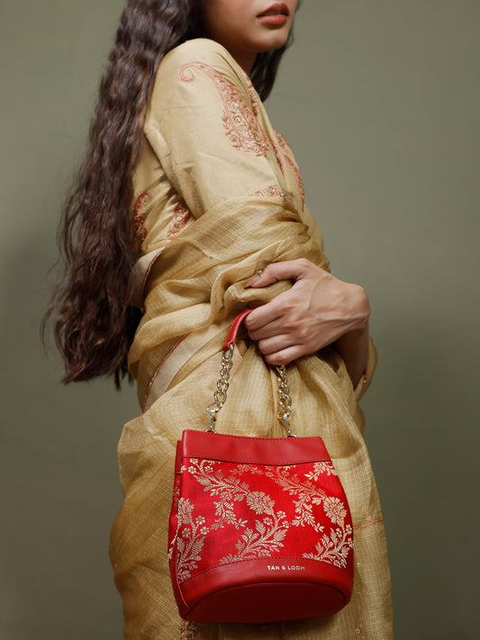 The Noor Potli Bag - Black Kosa Silk & Leather with Zardozi