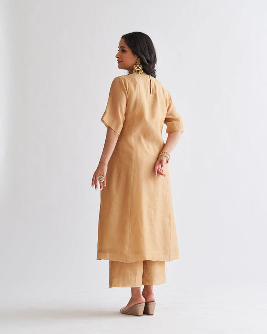 The Gold Silk Tissue Chanderi Gharara Set With Pittha Handwork