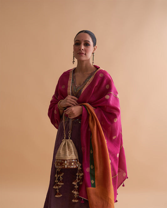 The Surmayee Silk Chanderi Ensemble with Woven Banarasi & Handwork