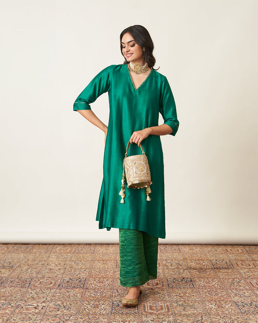 The Bottle Green Silk Tissue Chanderi Kalidaar Ensemble