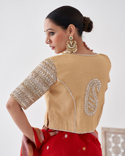 The Sona Chandi Silk Tissue Chanderi Blouse with Gota Zari Handwork