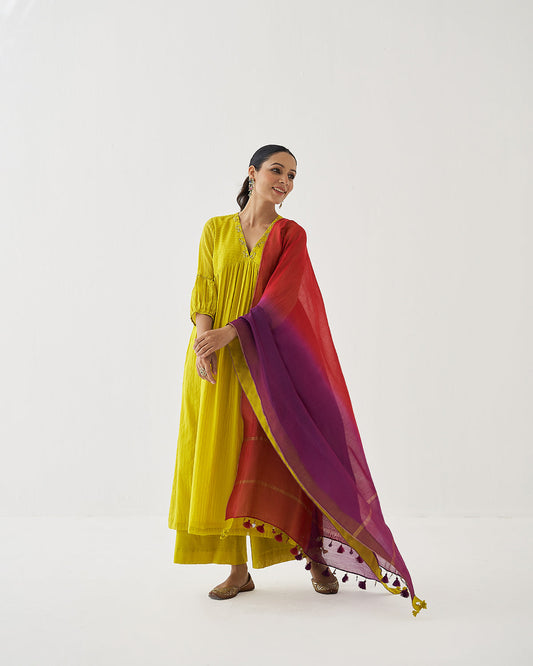 Tangerine Silk Tissue Chanderi Handwork Set with Two-Toned Silk Chanderi Dupatta