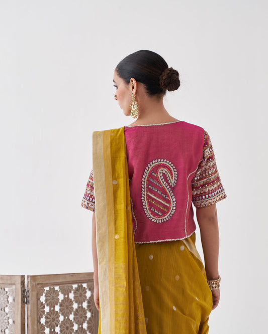 The Gulabi Silk Tissue Chanderi Blouse with Gota Zari Handwork