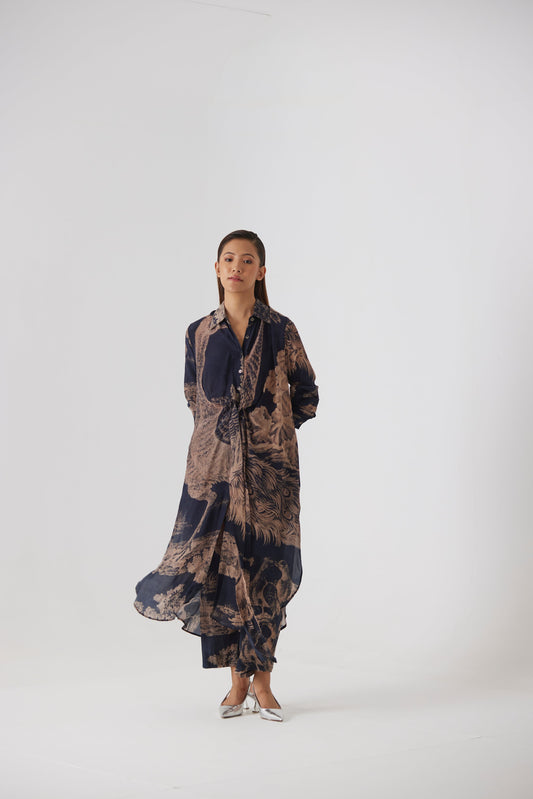 NAVY MORNI WRAP KURTA SET