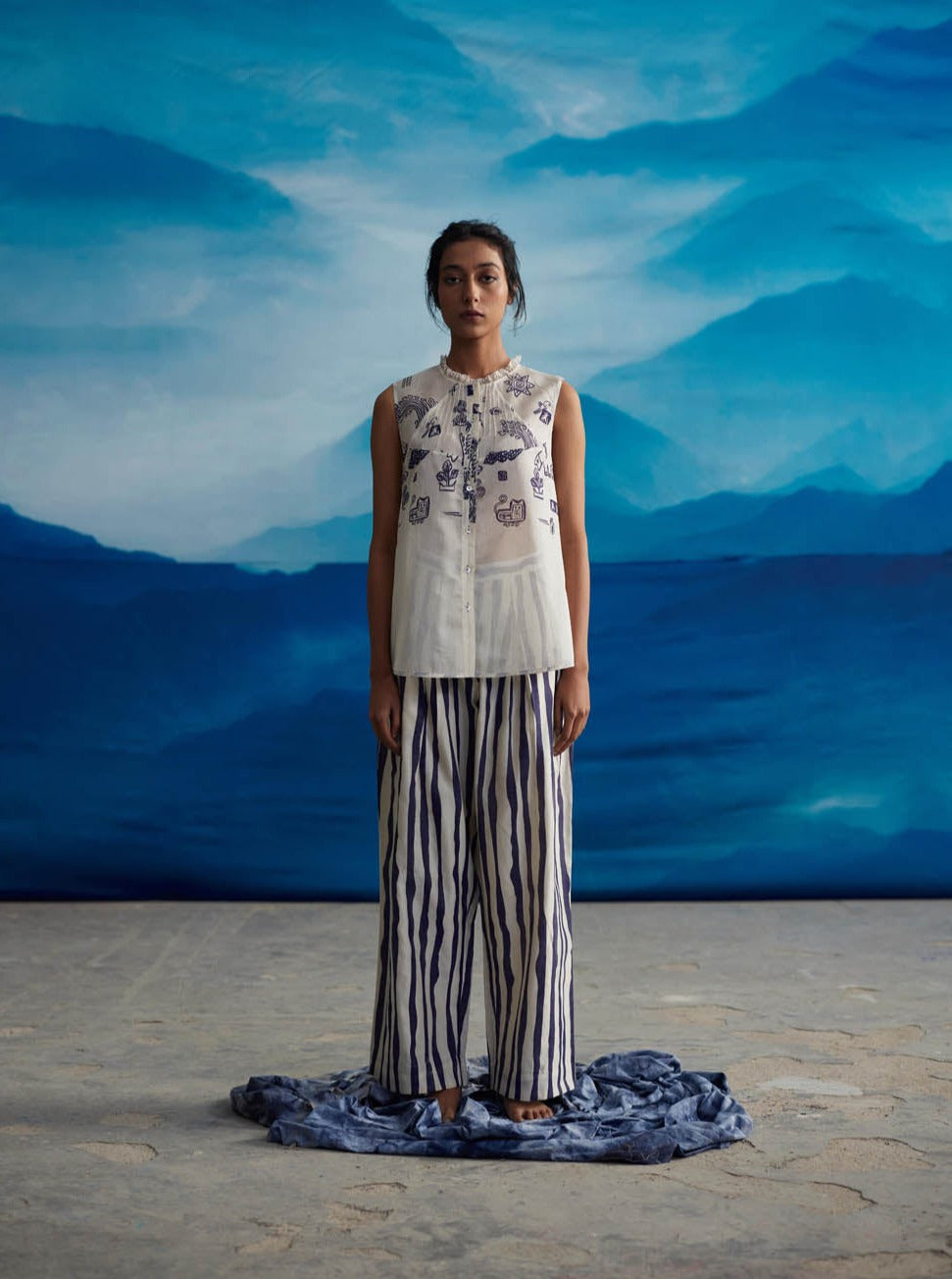 Crafted from exquisite printed Chanderi, the timeless pants are an ideal way to infuse a hint of sophistication into your attire. With a classic design boasting a straight leg, these pants elongate the silhouette and ensure a flattering fit, taking their elegance to new heights.